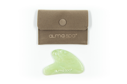 Скребок гуаша из нефрита в бархатном мешочке