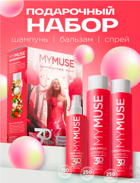 Подарочный набор MYMUSE шампунь, бальзам и спрей 3DMatrix